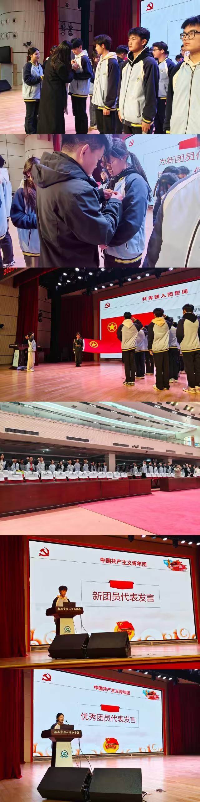活动在国歌声中启幕,校团委何永泽老师宣读新团员名单,团旗引领新团员代表入场。校领导为新团员代表颁发团员证、佩戴团徽,标志着他们正式加入共青团。