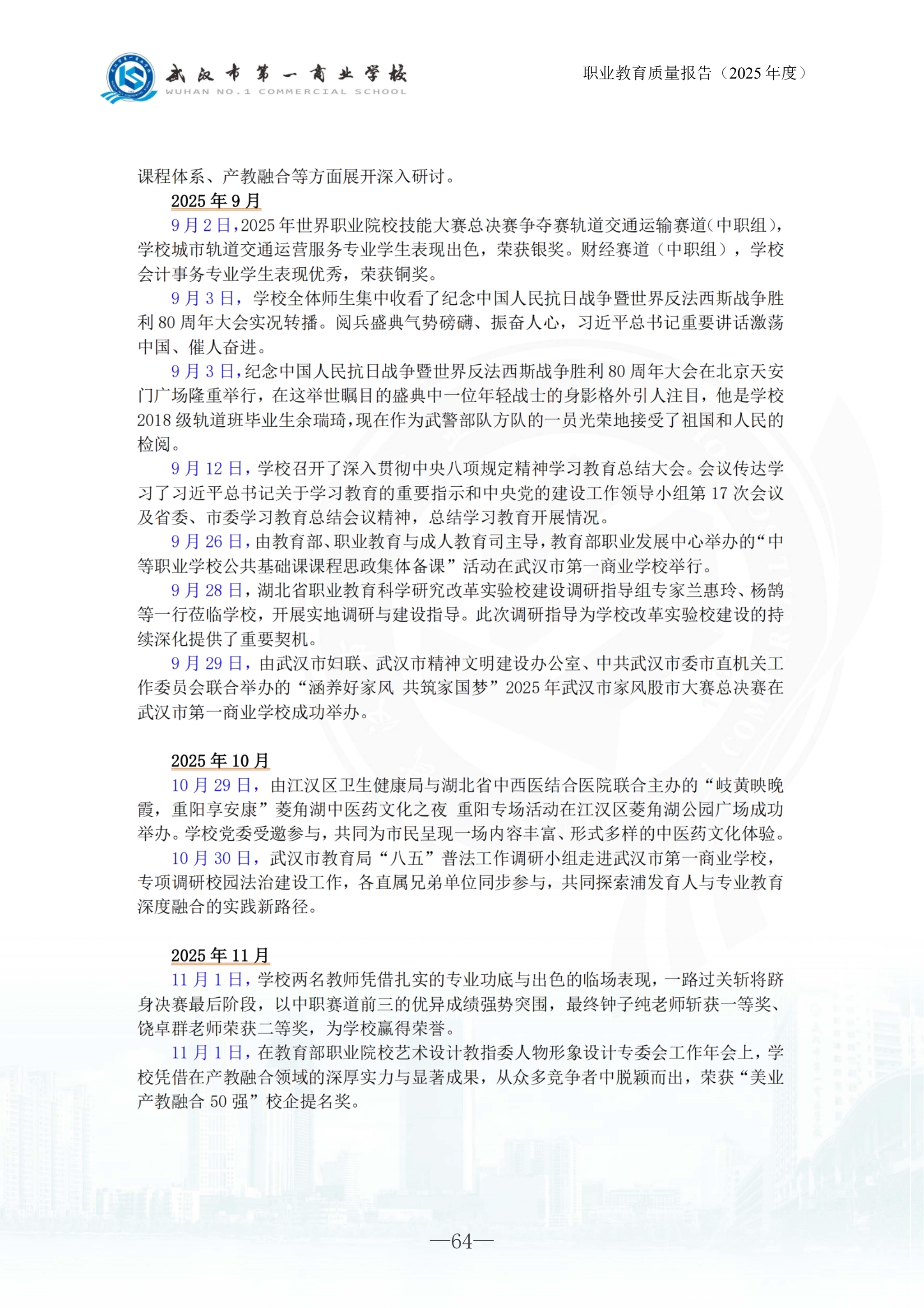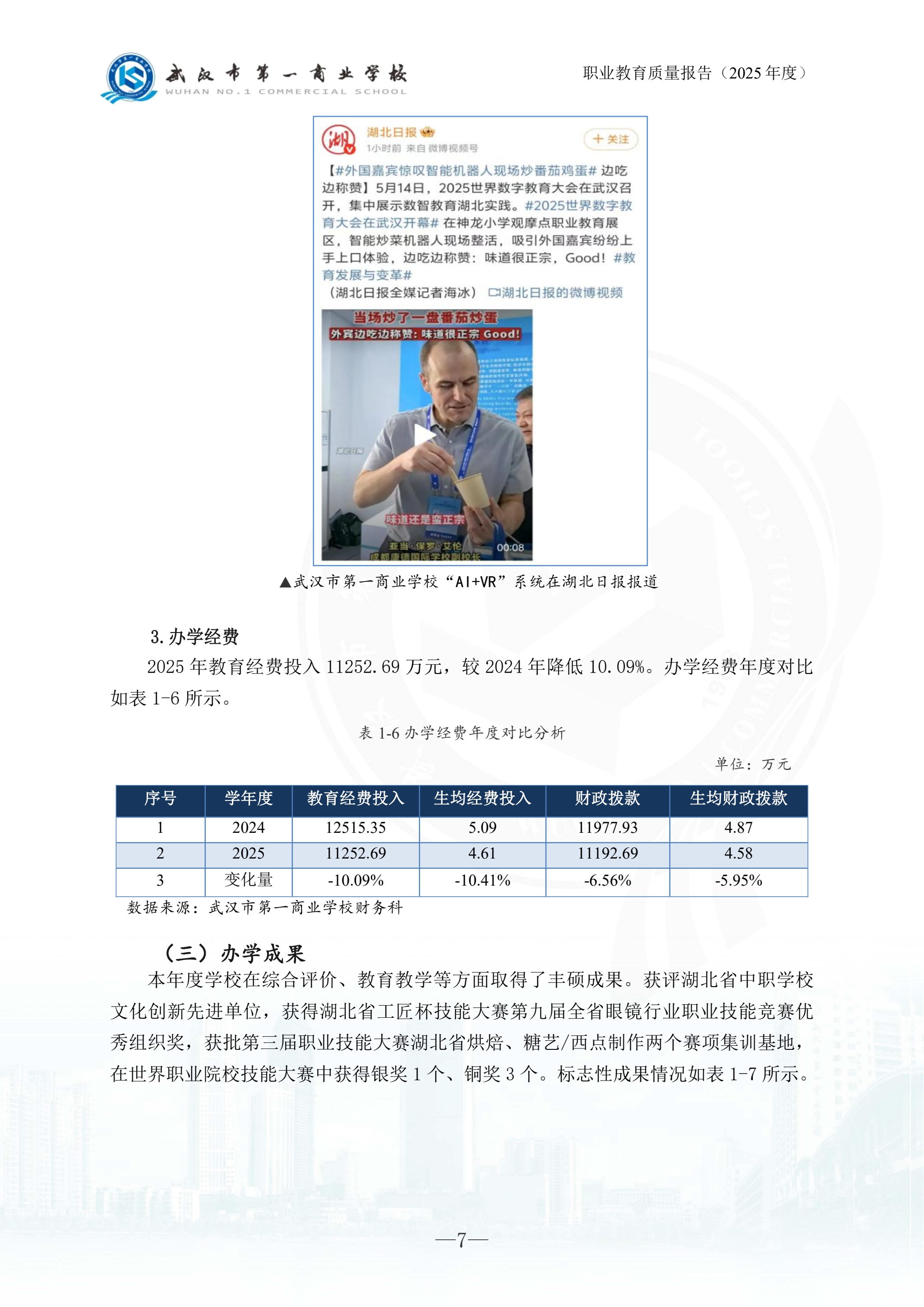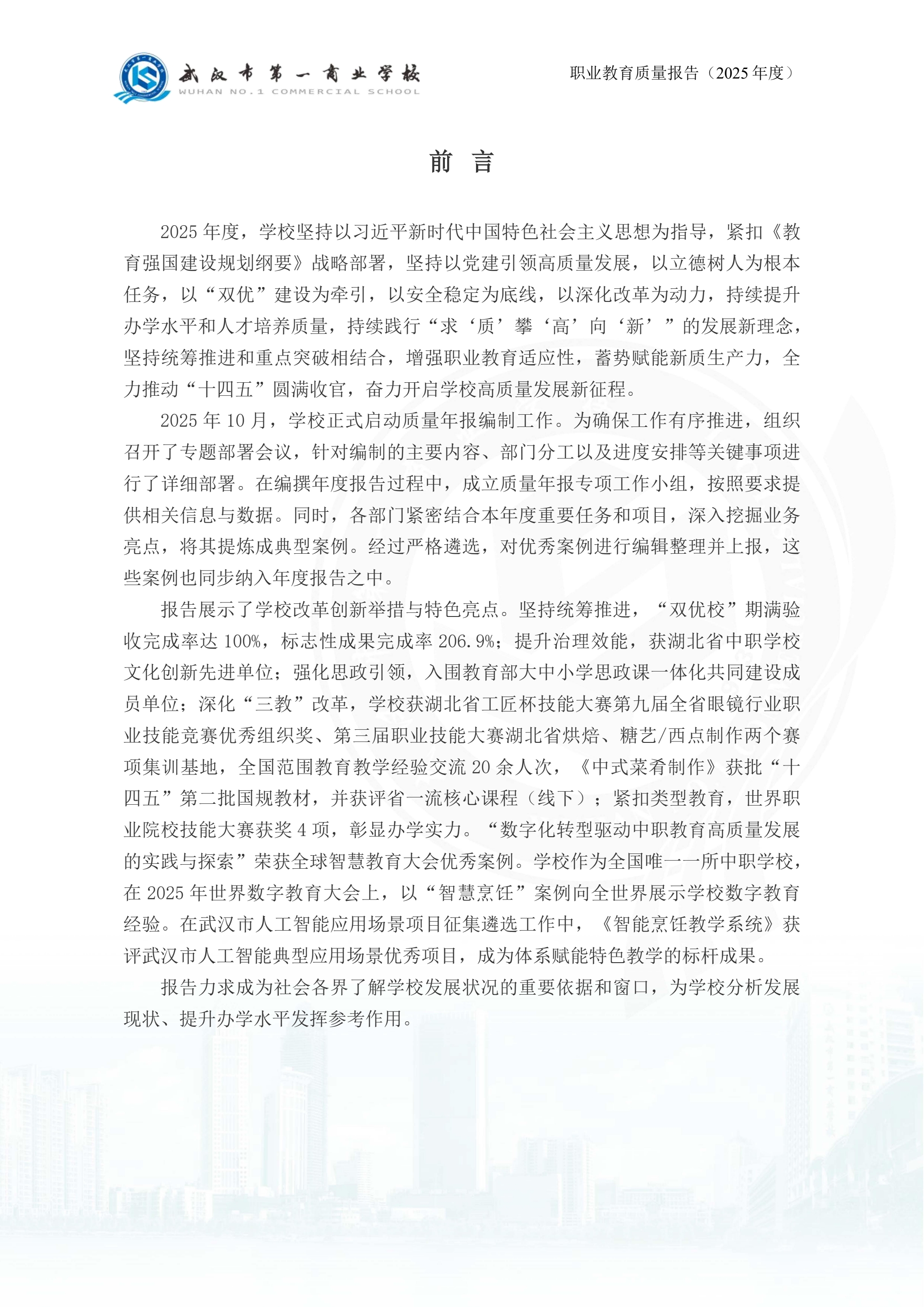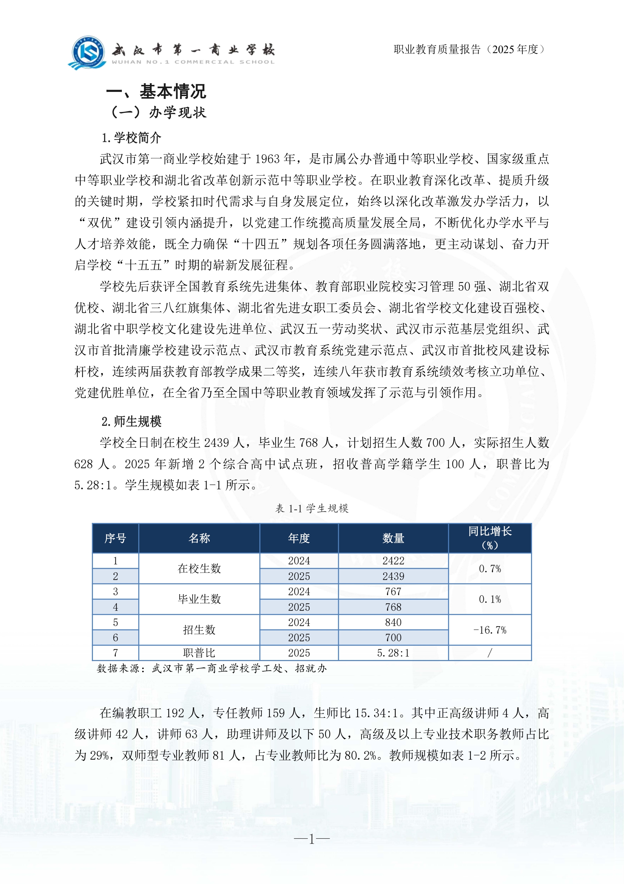 武汉市第一商业学校中等职业教育质量报告(2025年)