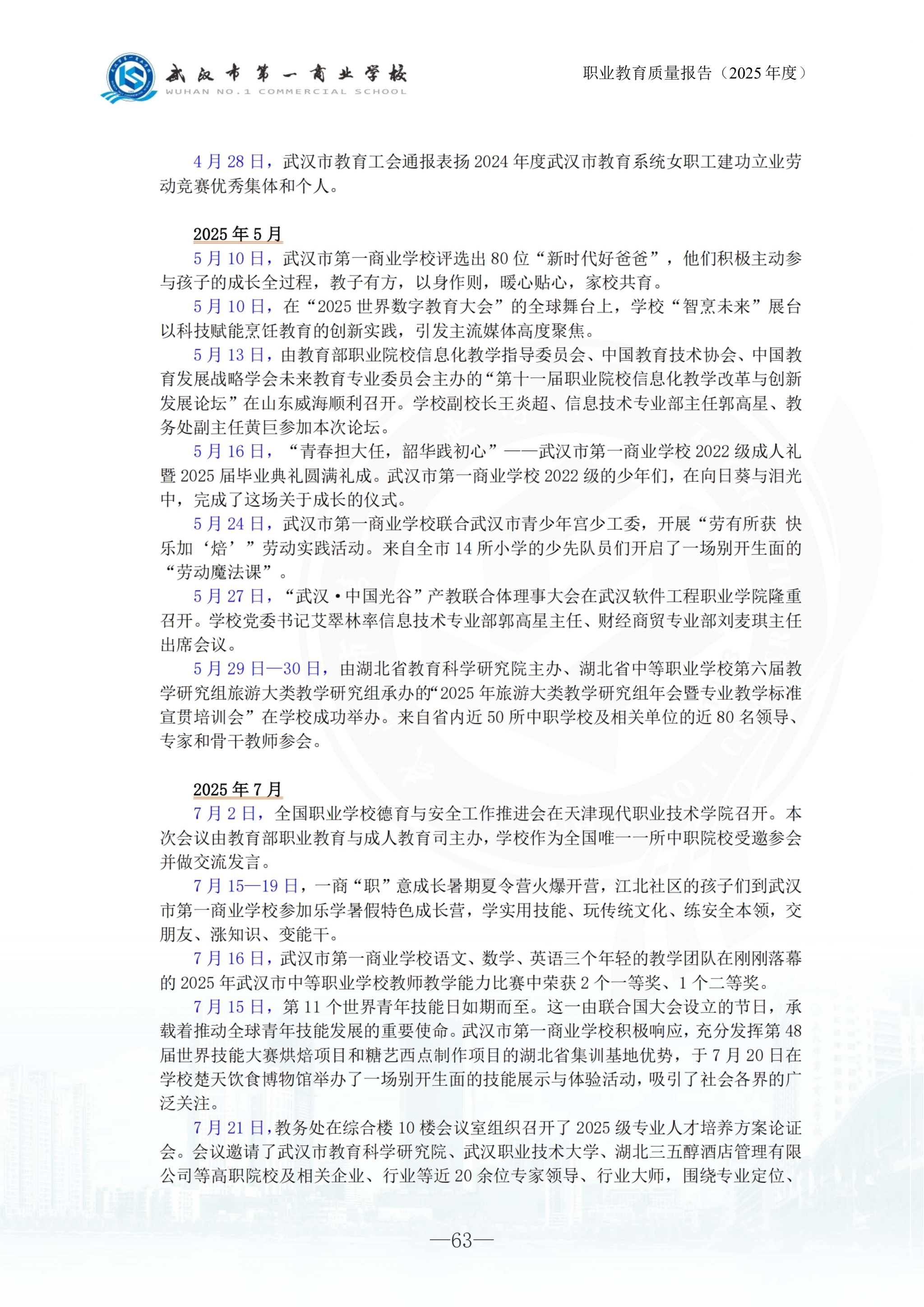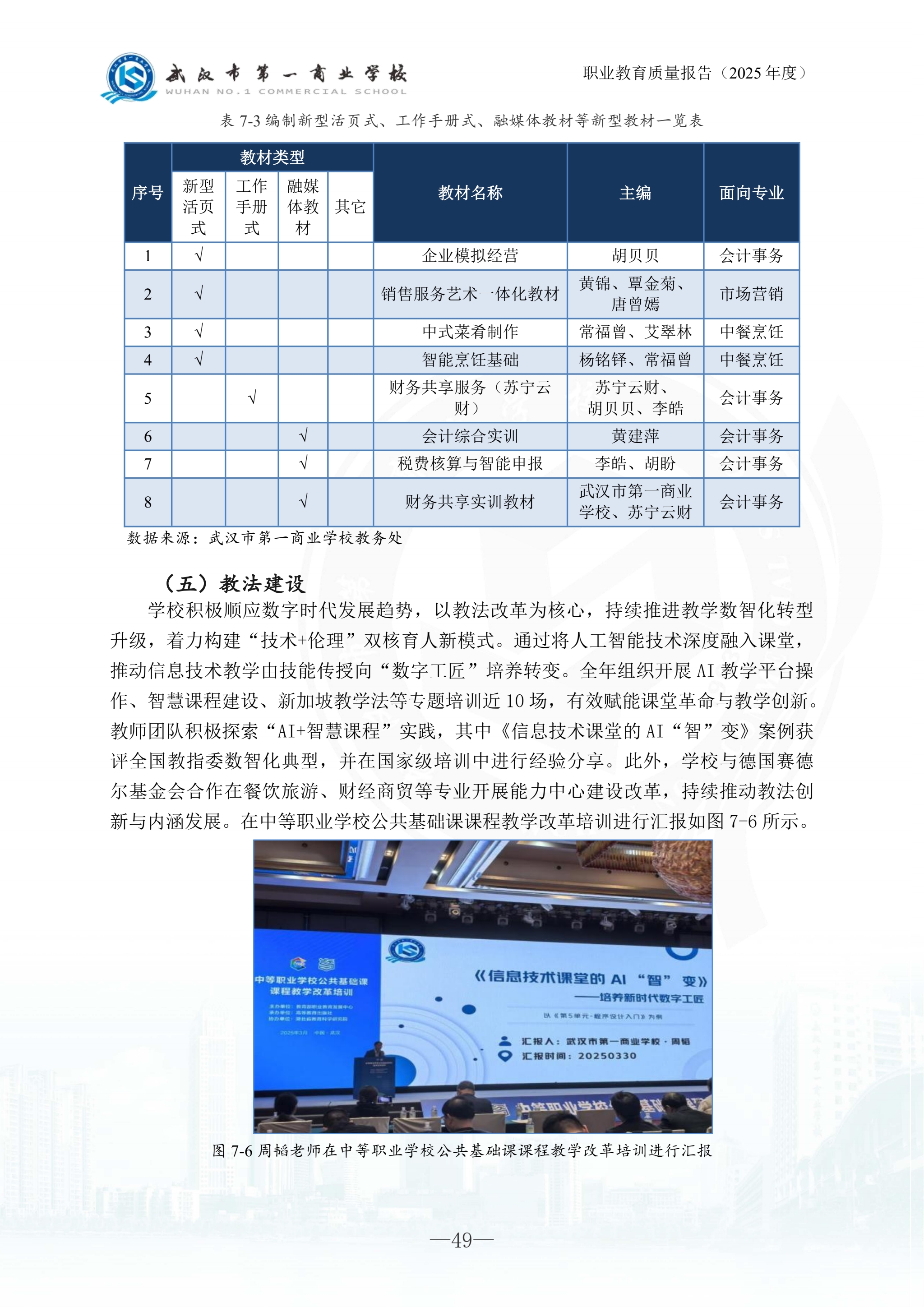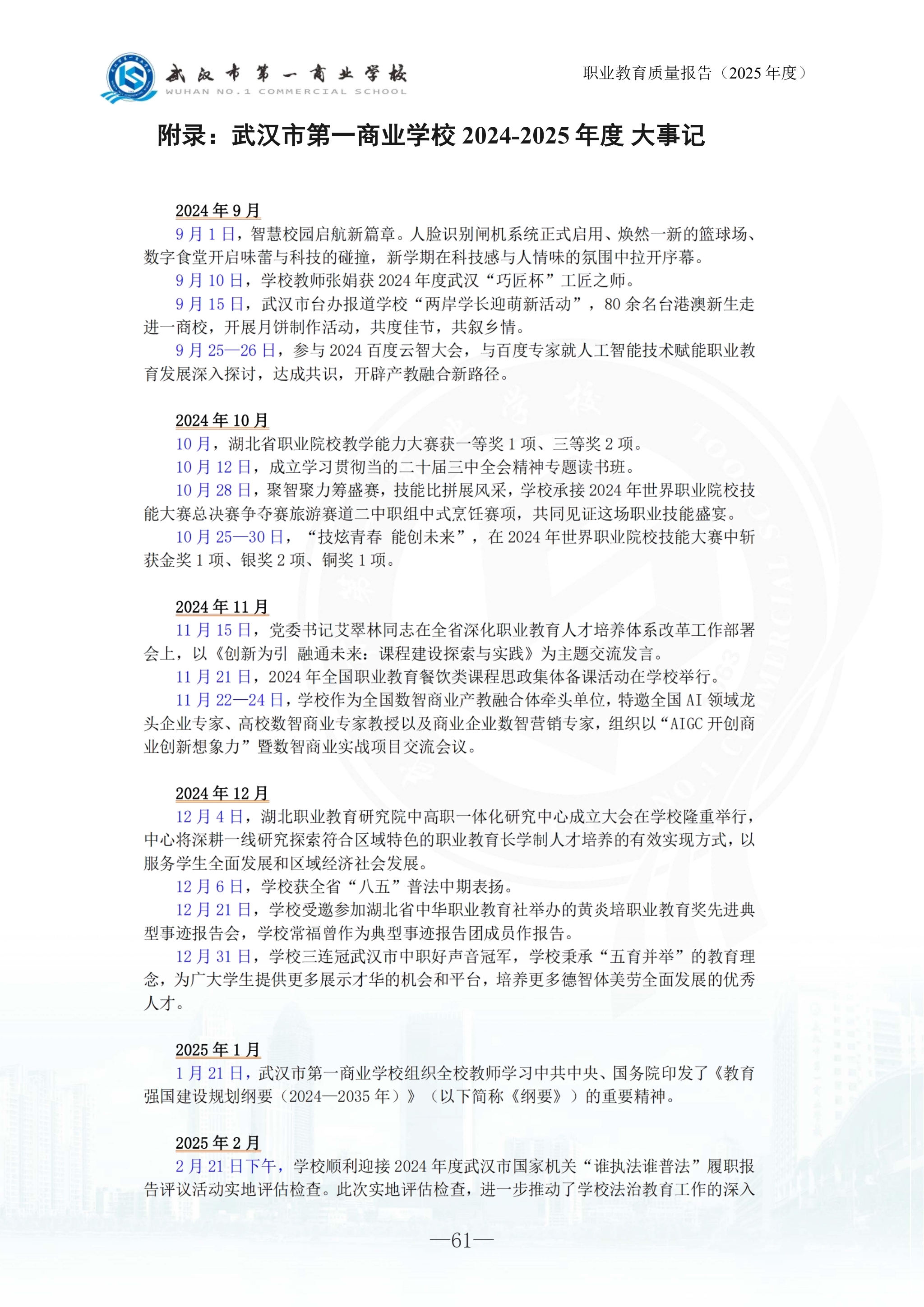 武汉市第一商业学校中等职业教育质量报告(2025年)