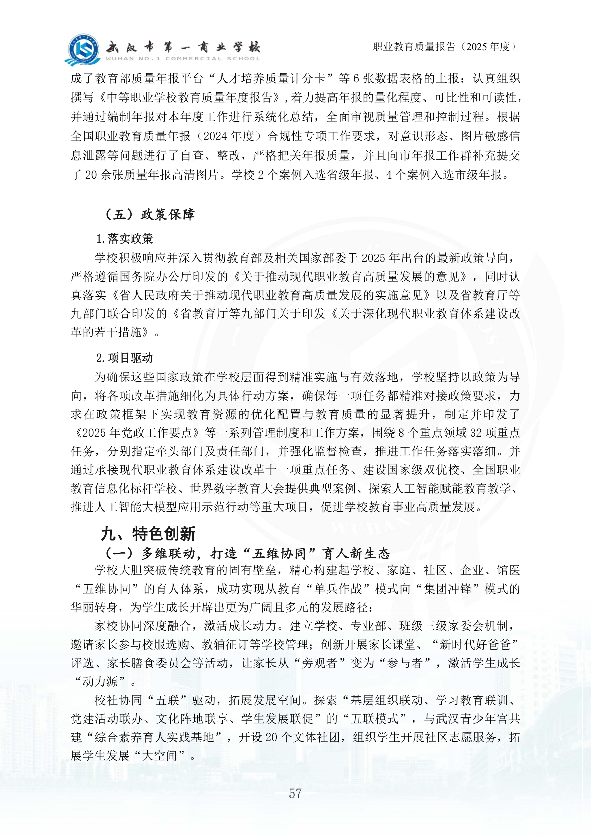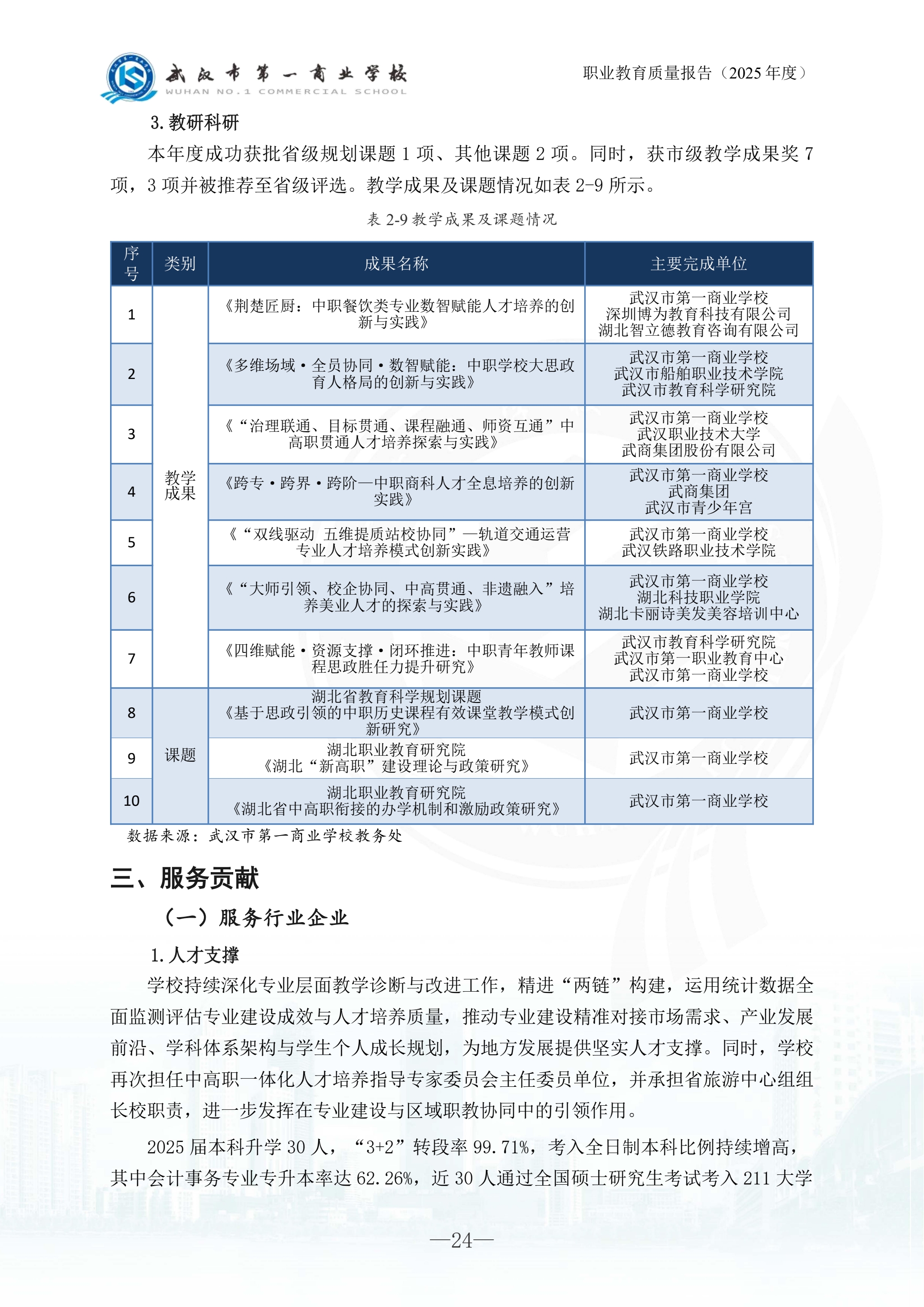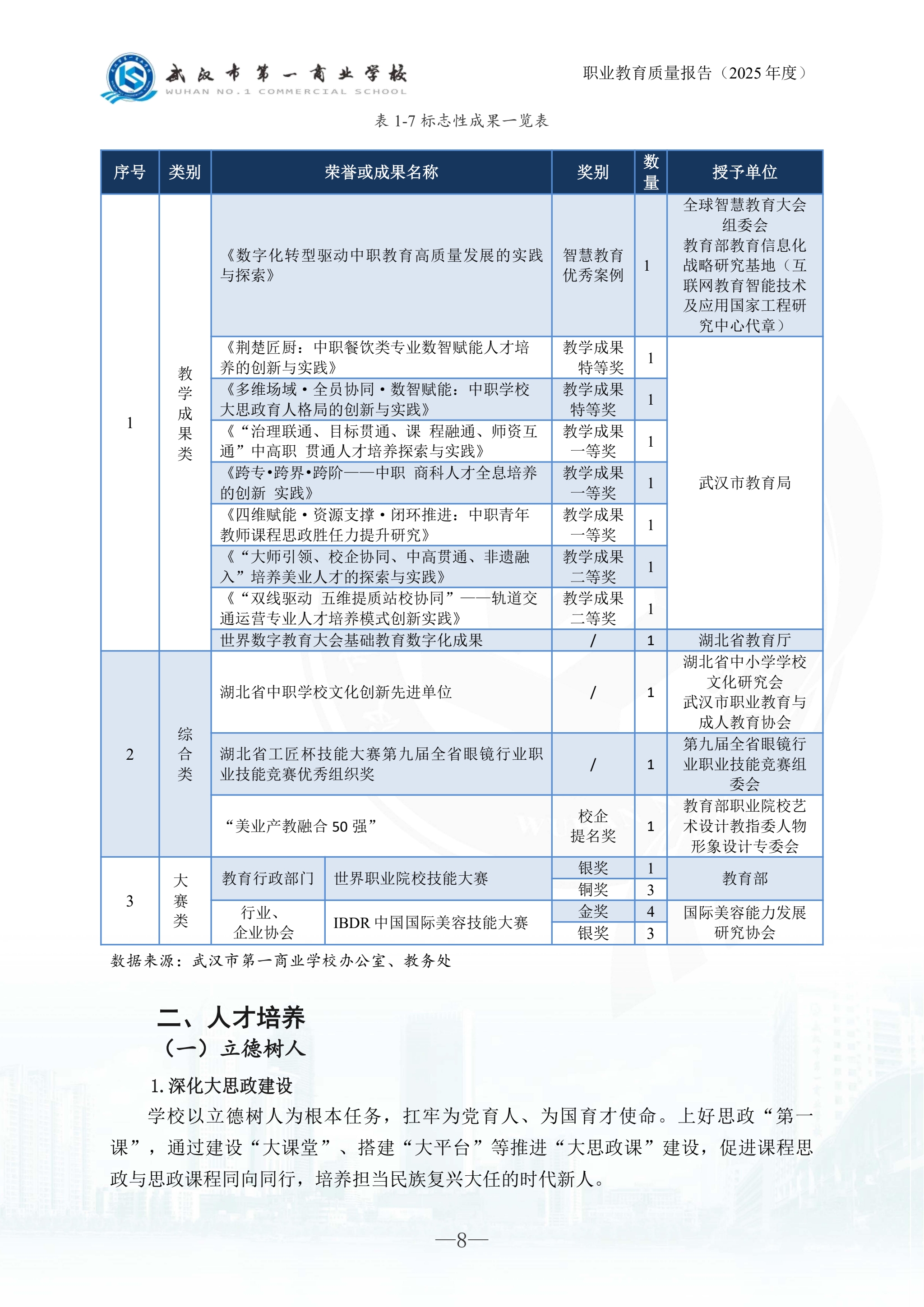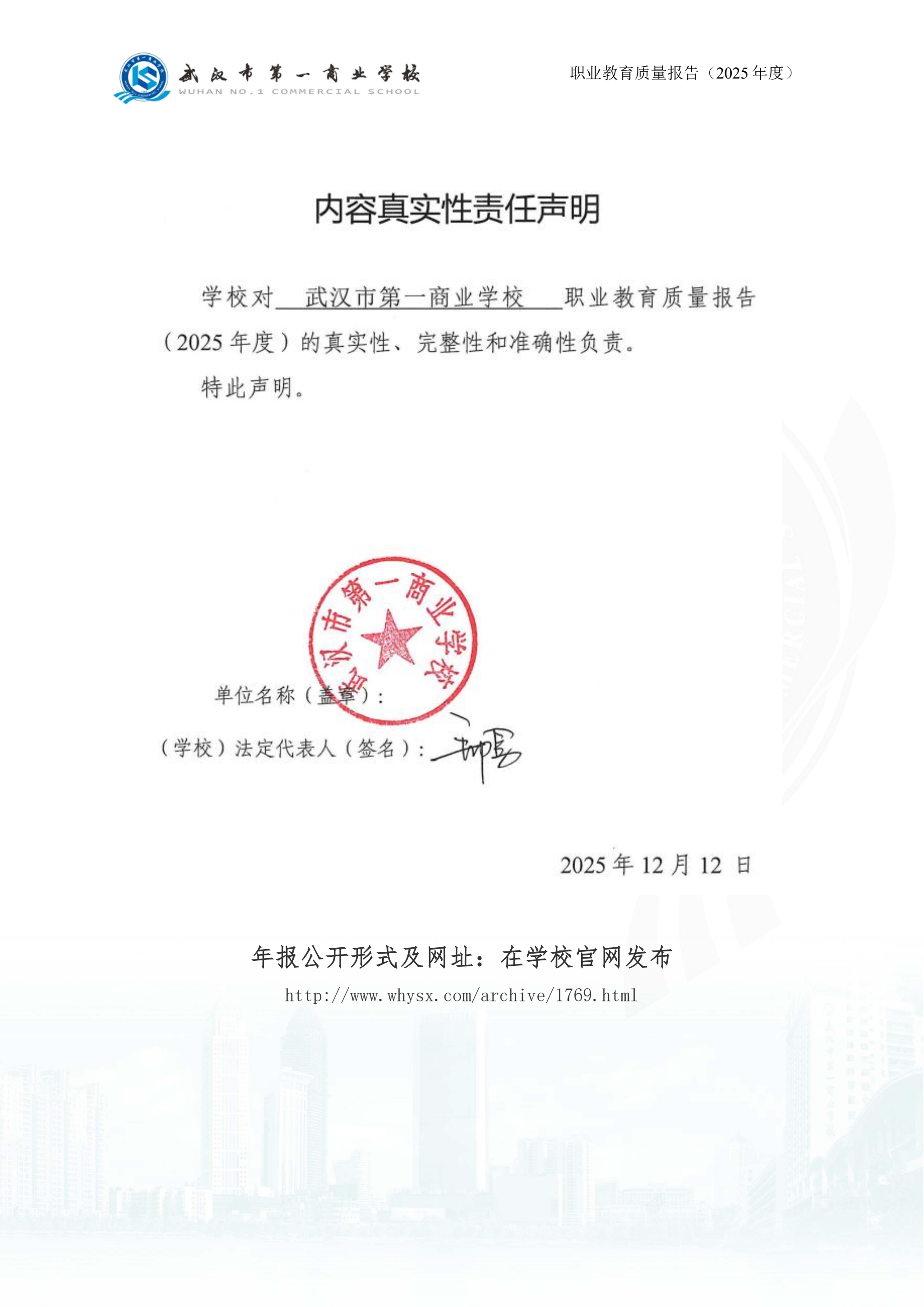武汉市第一商业学校中等职业教育质量报告(2025年)